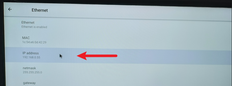 Retournez dans le menu afin de récupérer l’IP de l’écran.